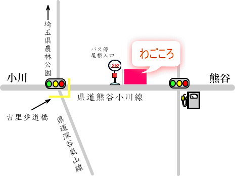 県道深谷嵐山線と県道熊谷小川線の交わる古里歩道橋より100m